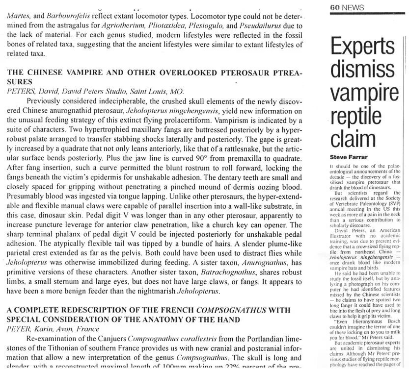 - ↑ Peters D. The Chinese vampire and other overlooked pterosaur ptreasures (англ.) // Journal of Vertebrate Paleontology : journal. — 2003. — Vol. 23 (Supplement 3). — P. 87A. — . Архивировано 24 ноября 2025 года.